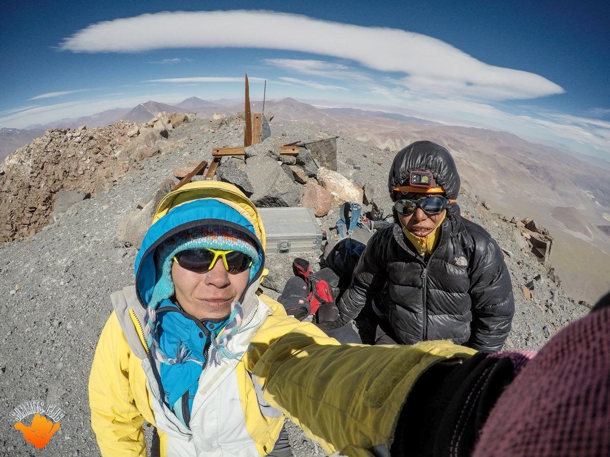 Día 8: Así que a intentar de nuevo con esa indicación de Germán. Casi al final quisimos intentar por una ruta no amable que nos descolocó por lo expuesta que estaba. Y estando arriba viendo que tan solo faltaban unos metros, decidimos bajar a una parte más segura y en ese momento pensar que por lo menos los intentamos. Una parada de carga de energías para bajar nos bastó, miramos hacia arriba y sentimos y vimos que era posible por otra ruta. Así fue como a las 16hs llegamos a la cumbre y, a las 19hs pasadas ya estábamos en gendarmería. Y cuando la sentís, la montaña te abraza y te pone a prueba.