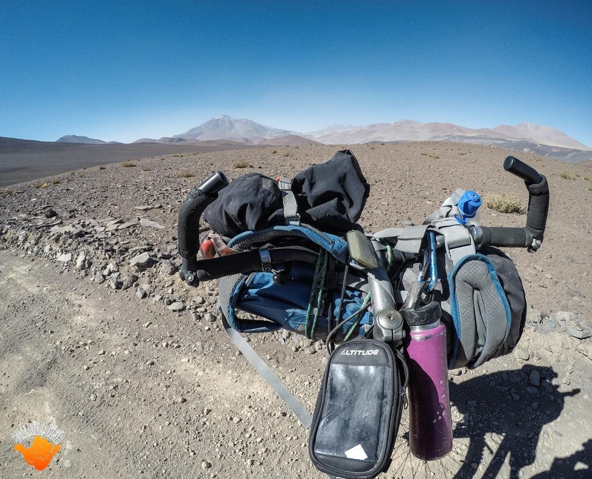 Día 4: Levantar campamento, seguir en bici hasta la laguna de Socompa. Por momentos caminando contra el viento y los arenales. Y así con muuucho esfuerzo y cansancio llegar al Paso Fronterizo Socompa (3800m). Y los carabineros chilenos que nos dicen que no podemos subir al Socompa pisando tierra chilena. Y así comenzaba la estadía en gendarmería. Agradecemos la amabilidad, generosidad y atención invaluable de cada uno de los grupos de gendarmes.